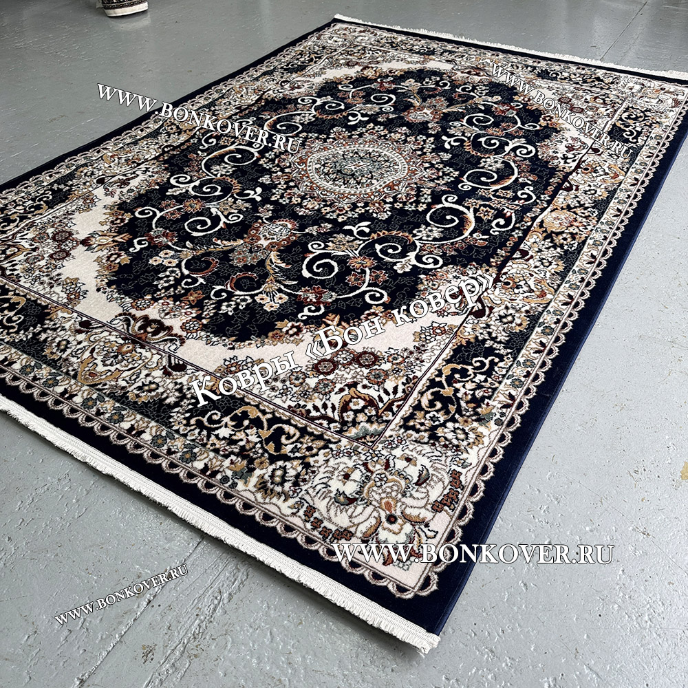 Шикарный Ковер Для Гостиной Медальон Дизайн 8789 Синий наполняет интерьер жилого пространства теплом и уютом, гармонично сочетает в себе изящество и красоту. Он соткан из экологически чистого сырья, комфортный и долговечный.