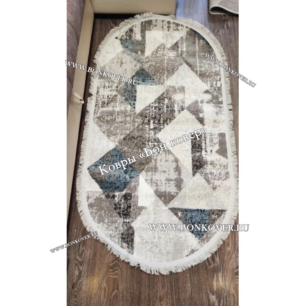 Элегантный Ковер Коротковорсный Лайт Дизайн 14 Ромбы Синий с Серым Овал наполняет интерьер жилого пространства теплом и уютом, гармонично сочетает в себе изящество и стиль. Он выполнен из износостойких материалов, комфортный и долговечный.