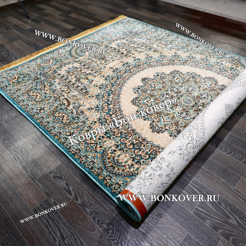 Долго искали смотрели на разных сайтах , в итоге ваш ковер приглянулся больше всего . Доставили в рулоне на следующий день , оплатили при получении . Идеальный вариант , цвет темно синий с переливом - рисунок очень выйгрышно смотрится !