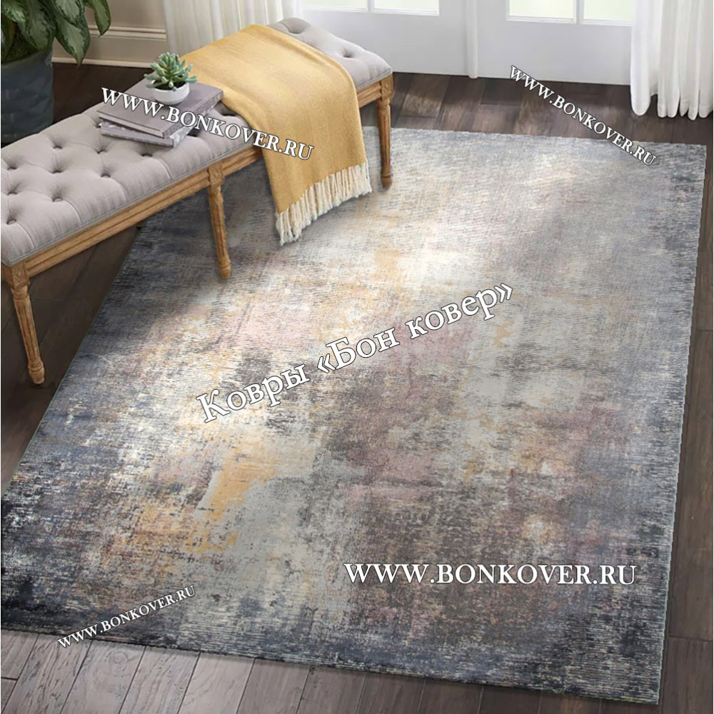 Изящный Ковер в гостиную дизайн 29664 наполняет интерьер гостиной теплом и уютом, гармонично сочетает в себе изящество и стиль. Он соткан из высококачественного сырья, прочный и долговечный.