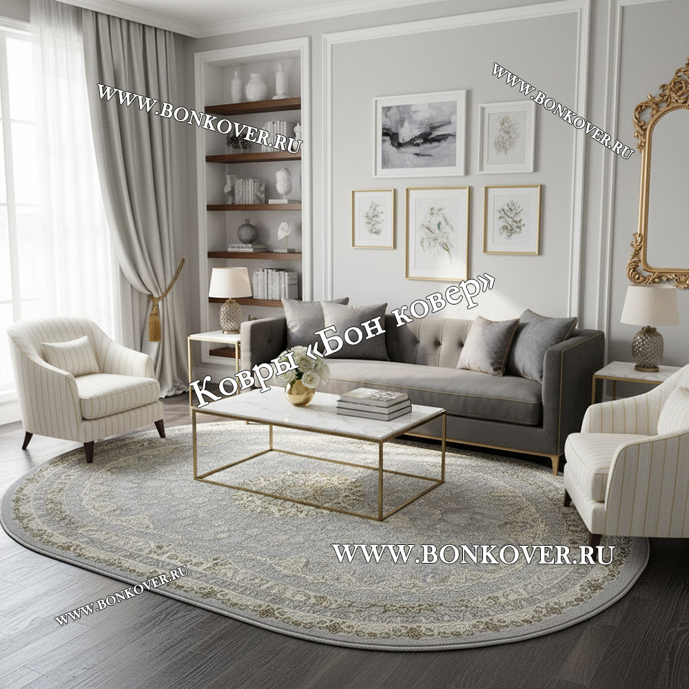 Турецкий Овальный Ковер Для Гостиной Арт 130 Серый станет стильным преображением вашей комнаты, подчеркивая высокий статус семьи владельца.